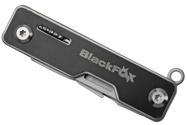 The Black Fox Pocket Boss is a small, handy multi-tool. Designed by Fox Knives and produced in Asia. It fits easily on your key ring. The tools are opened via a nail nick and are made from 420 steel. The handle is made from black anodized aluminium with a coloured plastic backspacer. Super lightweight, yet very robust.