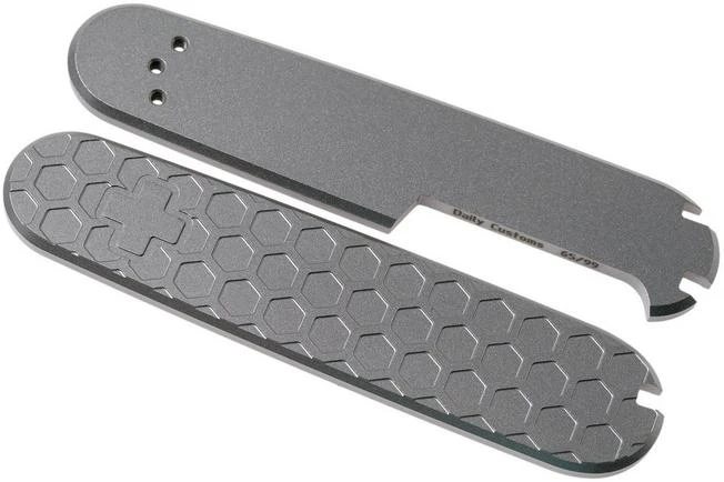 These Daily Customs 91.2+ Honeycomb 2D Pattern, Titanium P10011809 Victorinox scales are made for Victorinox pocket knives with a closed length of 91 mm. With these scales you can upgrade your beloved Swiss classic.