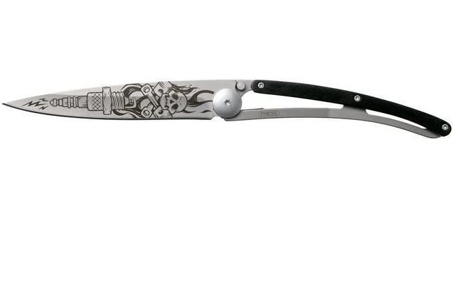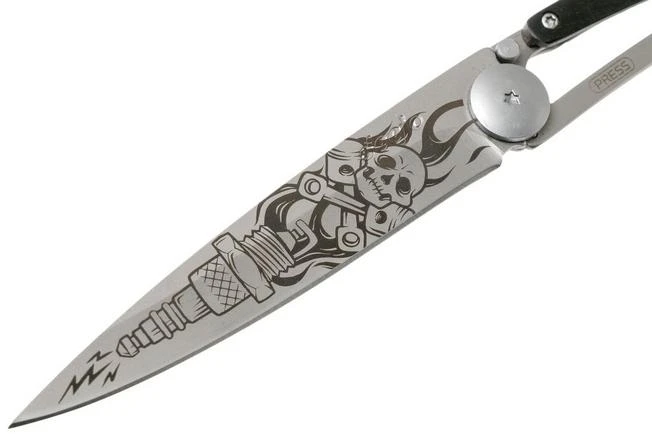 Deejo Tattoo 37g, Ebony Wood, Biker 1CB018-G Pocket Knife