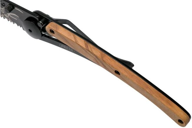 Deejo Tattoo Black Serrated 37g, Olive, Hunting Scene, 1GB000512 Pocket Knife