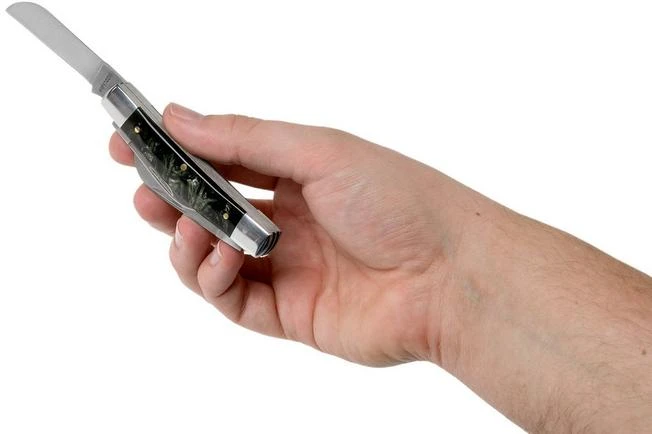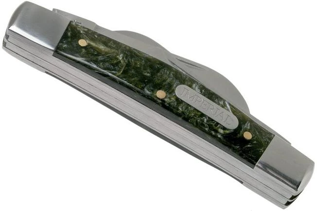 The Imperial Congress Black Swirl IMP17CON is a classic slipjoint pocket knife. The way the four blades are gripped together is a defining feature of the Congress design. In this case, it is four blades which all resemble a sheepsfoot shape.