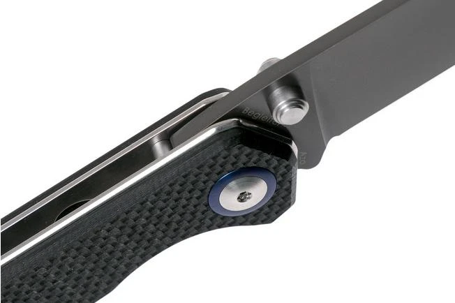 The Kizer Begleiter is a practical and affordable pocket knife for daily use. The handle is slim and offers enough grip thanks to the coloured G10. The blade is made from N690 steel. This is a stainless type of super steel from Austria. It retains its sharpness well and is tough. A great type of steel for EDC use. This version has a titanium coating.