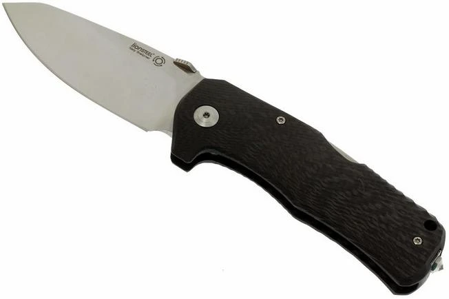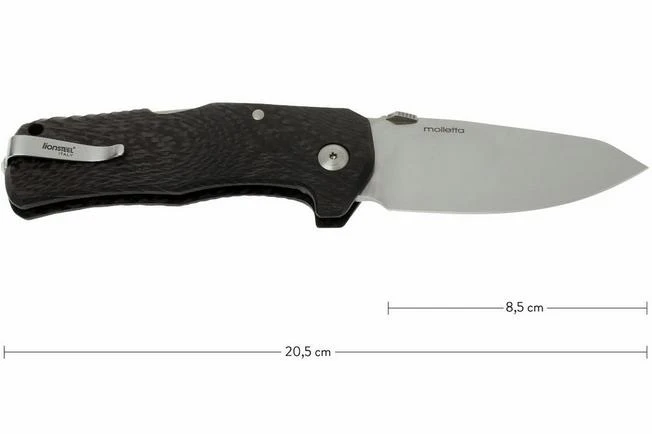 In addition to the well-known and popular SR1 and TiSpine-models, LionSteel also made a pocket knife with back lock called the TM1. The remarkable thing is that the handle, which is provided with subtle curves, is milled from one piece of micarta or carbon. The blade turns extremely smooth thanks to the use of IKBS-bearings. It is amazing how smoothly the blade opens and closes. And to make it all complete, the back of the pocket knife also houses a glass breaker. It is a pleasure to use this knife.