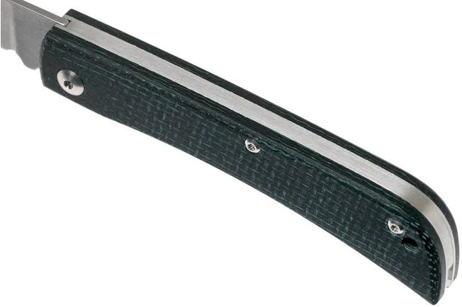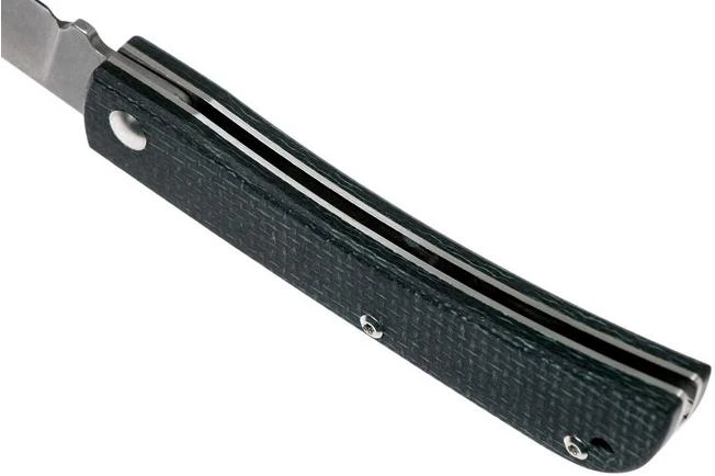 The Maserin Scout is a practical and compact EDC pocket knife. The first thing you notice is the stunning coloured micarta handle. Micarta is comprised of layers of canvas with epoxy which is compressed under high pressure. This leaves you with a very sturdy and beautiful handle material. Interesting about micarta is that it can become darker after use. It is the result of the oils in your hand that form a sort of patina. Getting tired of this dark colour? Simply degrease it with some petrol and the micarta will be almost as good as new again.