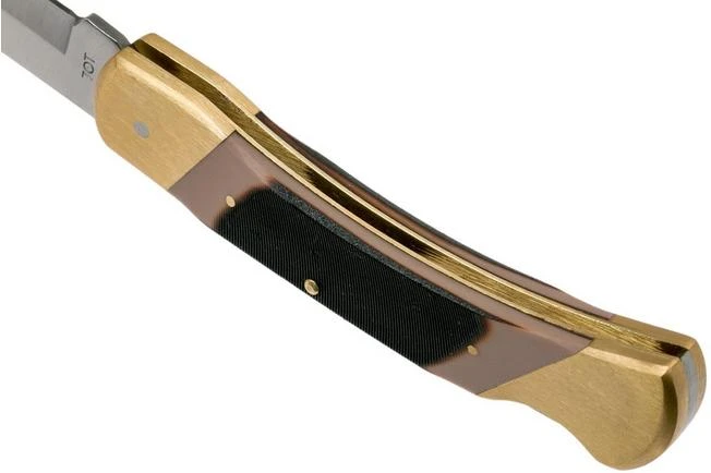 The Old Timer Cave Bear 7OT is an affordable pocket knife with a polymer handle. This is a classic pocket knife, with brass bolsters and a wooden handle. You open it with two hands, and when opened, a back lock locks the blade in place, keeping your fingers safe.