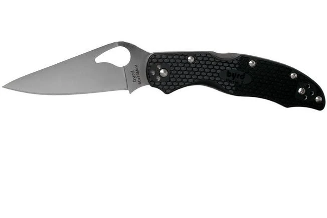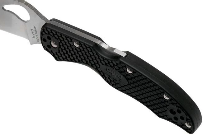 The Spyderco Byrd Harrier 2 is a practical pocket knife for daily use. The finger grooves in the handle ensure you have enough grip.The handle is made from FRN. A light-weight and incredibly strong material. Spyderco enhanced the handle with a texture that offers a lot of grip. As such the handle won’t slide from your hand during use. Great when you spend time in humid surroundings, for instance.