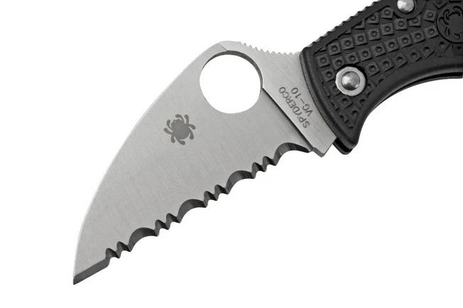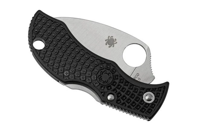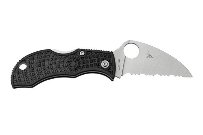 The Spyderco Manbug Wharncliffe MBKWS Serratedis a very compact knife that is nevertheless a worthy member of the Spyderco family. There is a back lock to hold the blade in place when opened. And this blade is definitely meant to be used. The ridges on the spine of the blade (jimping) ensure that you have a lot of control over your movements. This is an ideal knife to keep with you at all times, for instance on your keyring.