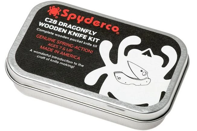 The Spyderco Dragonfly Wooden Kit is a wooden model of the famous Spyderco Dragonfly. It is a construction kit, so you have to assemble it yourself! Also great as a gift for kids who are too young to own the real deal. The Dragonfly Wooden Kit comes with an instruction manual. It is an amazing way to learn how a real backlock works. The set comes in a tin, a great and tough gift.