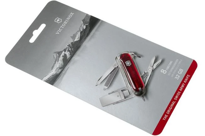 With the Victorinox @Work 4.6235.TG32B1 you will never have to borrow a pen or flash drive ever again. This pocket knife is namely not only enhanced with all traditional tools you often find on Swiss pocket knives, but also with a pen and a 32 Gb USB flash drive.