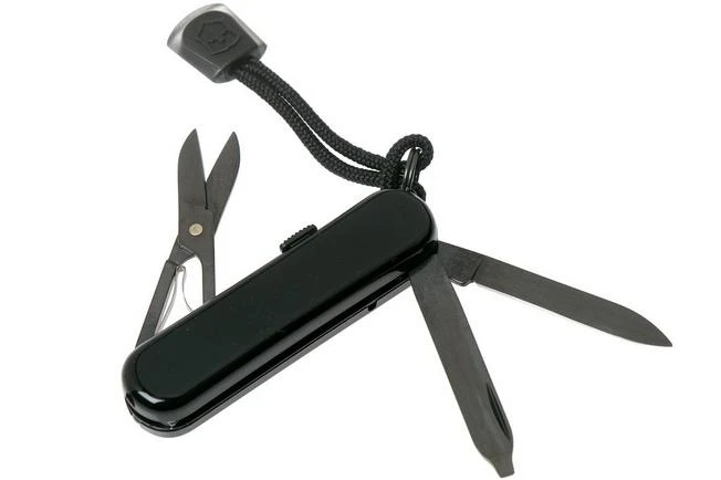 With the Victorinox Signature Lite Onyx Black 0.6226.31P you will never have to borrow a pen ever again. This pocket knife is namely not only enhanced with all traditional tools you often find on Swiss pocket knives, but also with a pen and an LED light. In addition, the Signature Lite is enhanced with scissors, a knife and a ruler of which the head can be used as a screwdriver.