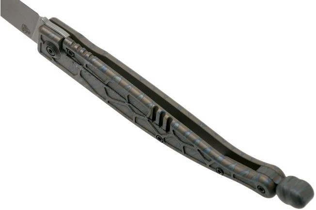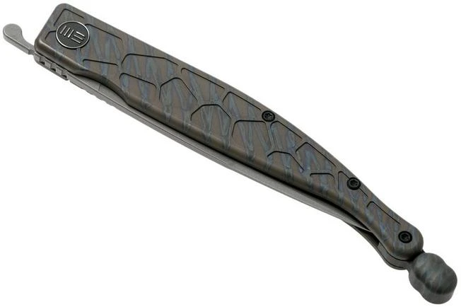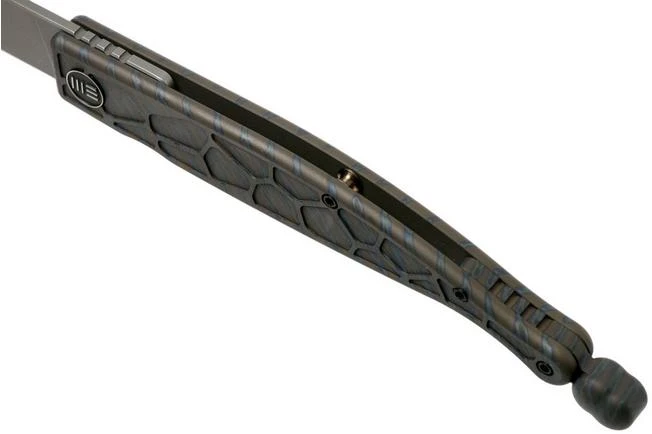 The WE Knife Roman 2008 is a large and special pocket knife, designed by Alessandra de Santis. It is clear that the inspiration for this design came from the classic ‘Navaja’ knives. A Spanish model that looks like a Laguiole, but is much older. The long, wavy handle stands out, especially in combination with the pointed blade.